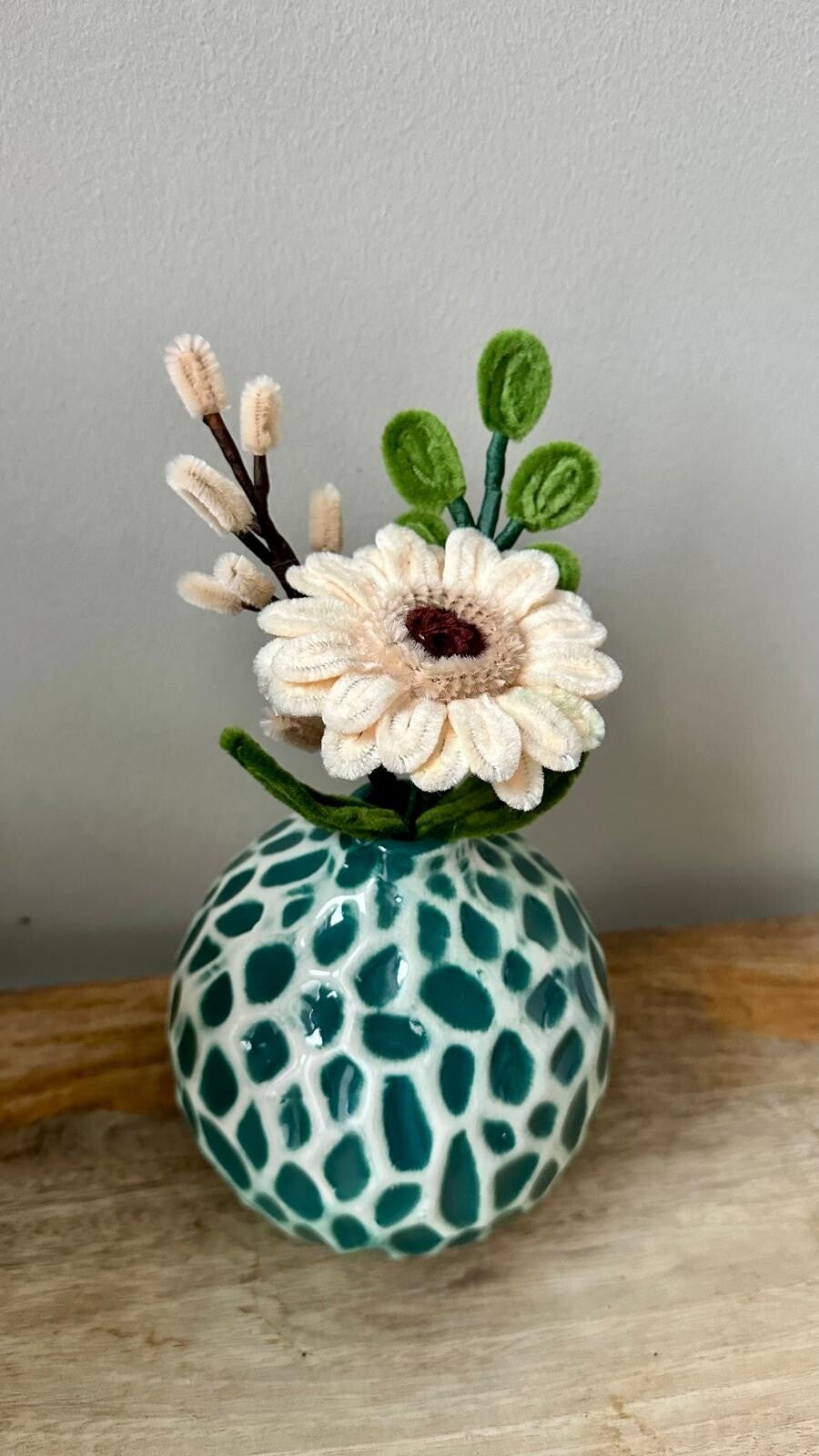 Handgemaakt gerbera (beige) arrangement in een sierlijk vaasje.Met zorg samengesteld en volledig met de hand gemaakt voor een natuurlijke, blijvende uitstraling.