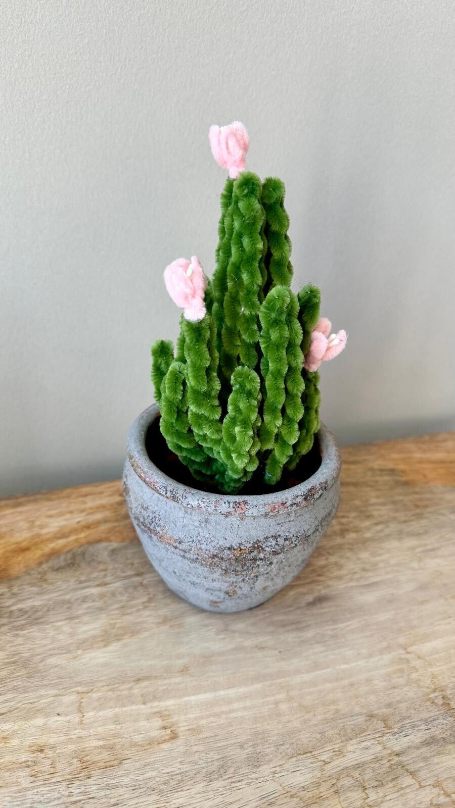 Handgemaakte cactus in een sierlijk bloempotje.